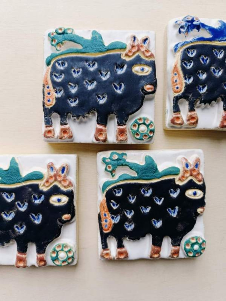 Загалом у невеликій майстерні з емблемою корововка за останні кілька місяців виготовлено кілька десятків різносерійних кахлів. Господарі щось продали, щось подарували. Готують каталог і комерційні пропозиції для серійного виробництва тих кахлинок, які сподобаються замовнику. А в уяві Насті ще більше ідей, історій, малюнків, які хочеться реалізувати. Єдина проблема — не все одразу можна вмістити в електропіч…