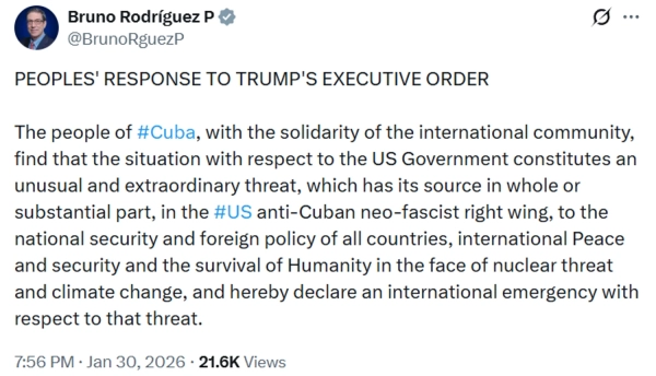 Глава МЗС Куби Бруно Родрігес повідомив про “міжнародну надзвичайну ситуацію” через становище у зв’язках із США. Про це він повідомив у мережі X, інформує УНН.