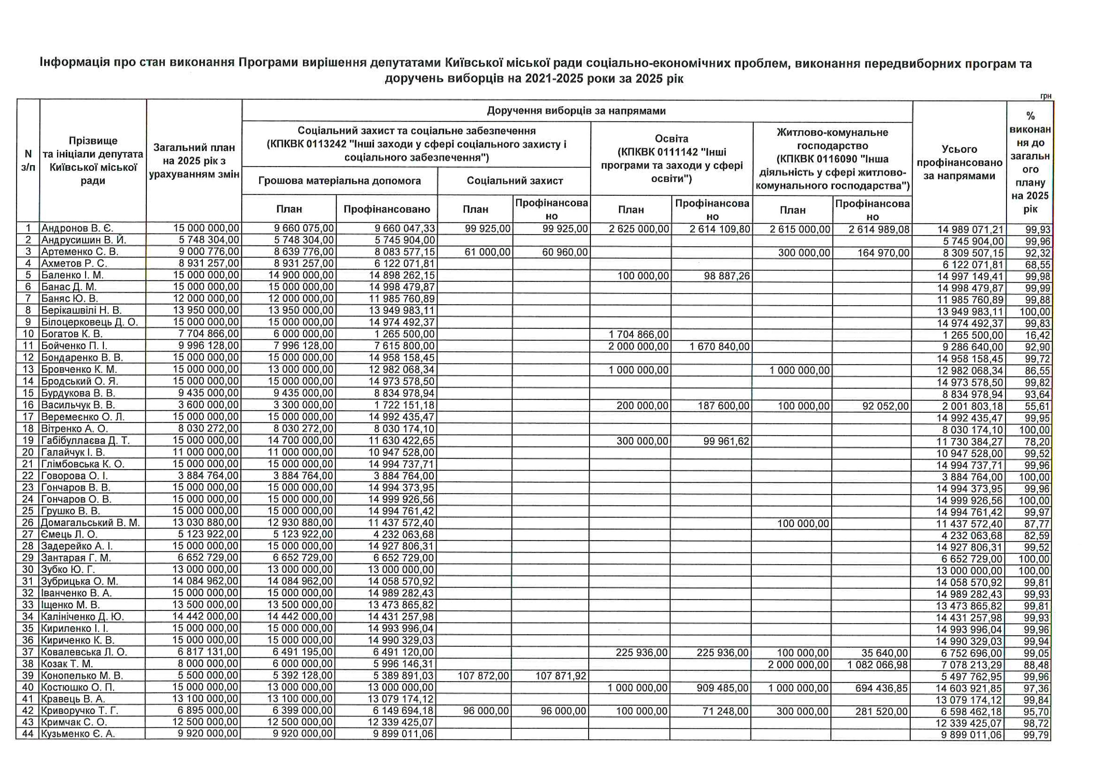 Інформація про стан виконання Програми сприяння депутатами Київської міської ради соціально-економічному розвитку, реалізації виборчих обіцянок і звернень громадян на 2021–2025 роки за 2025 рік