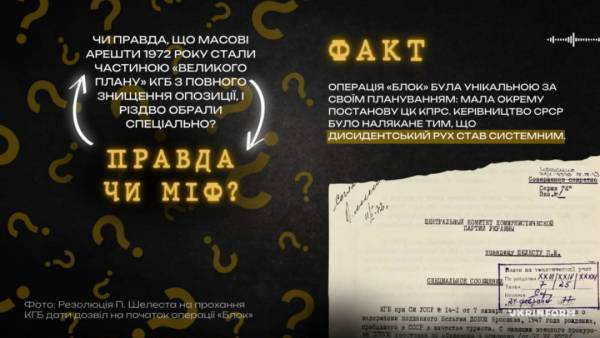 Чи правда, що масові арешти 1972 року не були низкою окремих «справ», а стали кульмінацією «великого плану» КДБ — операції «Блок», спрямованої на цілковите знищення українського опозиційного середовища, і розпочалася на Різдво не випадково?