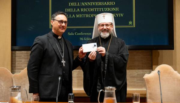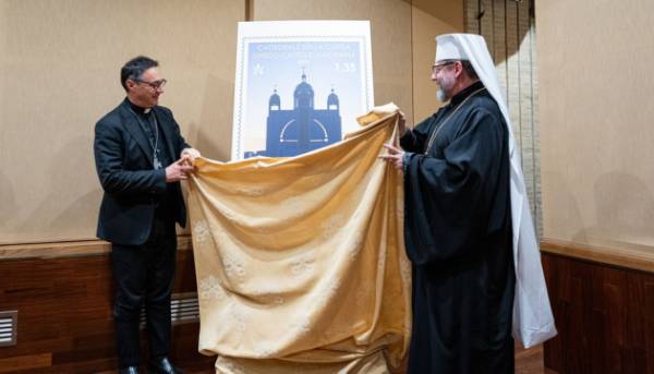 У Ватикані анулювали марку, присвячену трьом значущим подіям в історії УГКЦ Фото 27.02.2026 13:14 Укрінформ У Ватиканських музеях, за присутності Глави Української греко-католицької церкви Святослава, відбулася святкова презентація нової поштової марки Держави-Міста Ватикан, що відзначає три важливі дати в життєдіяльності УГКЦ.