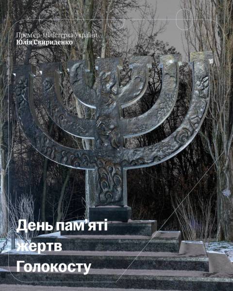 Прем’єр-міністр Юлія Свириденко у День пам’яті жертв Голокосту підкреслила, що згадка про цей найжахливіший злочин в історії є закликом до світу про відповідальність зупиняти злодіяння проти людяності та не мовчати перед лицем насильства.