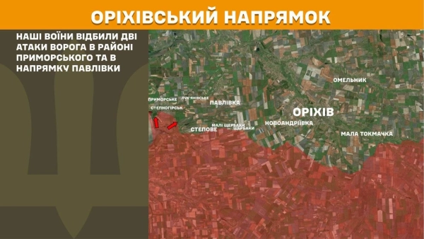 На Оріхівському напрямку протягом минулої доби Сили оборони відбили дві атаки ворога в районі Приморського та в напрямку Павлівки.