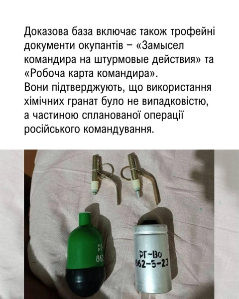 Дев’ятьом воякам рф повідомлено про підозру у використанні заборонених методів ведення бойових дій проти українських оборонців. Зафіксовано 14 випадків застосування гранат РГ-Во та К-51 з отруйною субстанцією CS, що спричинило інтоксикацію щонайменше семи військовослужбовців ЗСУ.