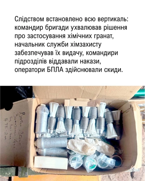 Слідством встановлено всю лінію відповідальності. Командир бригади приймав рішення про використання хімічних гранат, начальник служби хімзахисту організовував їх видачу, командири підрозділів віддавали відповідні накази, а оператори БПЛА здійснювали скидання боєприпасів.