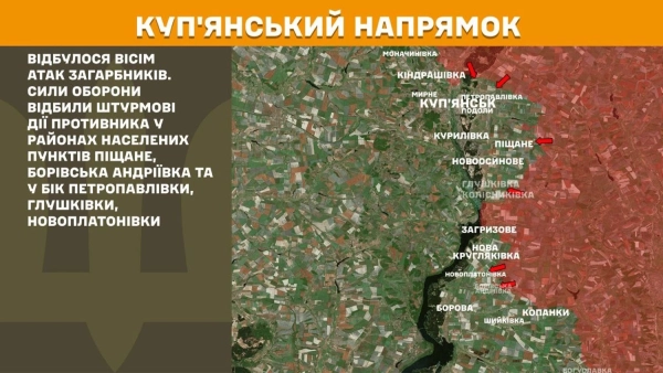 На Куп’янському напрямку вчора трапилось вісім атак загарбників. Сили оборони відбили наступальні дії супротивника в районах населених пунктів Піщане, Борівська Андріївка та у напрямку Петропавлівки, Глушківки, Новоплатонівки.