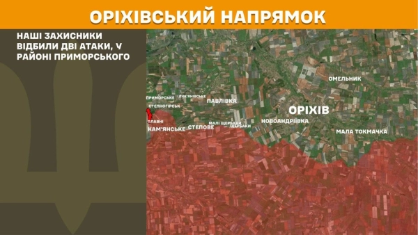 На Оріхівському напрямку наші воїни відбили дві атаки в районі Приморського.