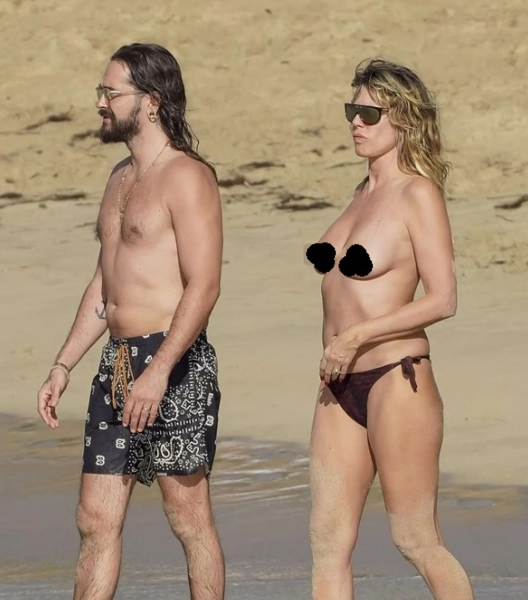52-річна супермодель Гайді Клум віддалася пляжному релаксу без верху купальника на острові Сен-Бартелемі разом зі своїм обранцем Томом Кауліцем. Вона аргументувала свою поведінку європейським зростанням і звичаями французьких островів.