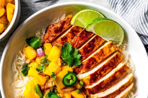 • Очищене манго наріжте соломкою та покладіть до мʼяса.